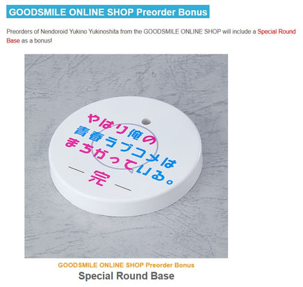 Each of the four main characters of My Teen Romantic Comedy had the same preorder bonus stand. If we have it in stock sealed you can chose which one you want if you care about having the packaging list the appropriate Nendoroid number but the stand base itself is identical regardless of which you choose.