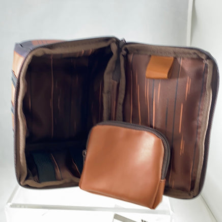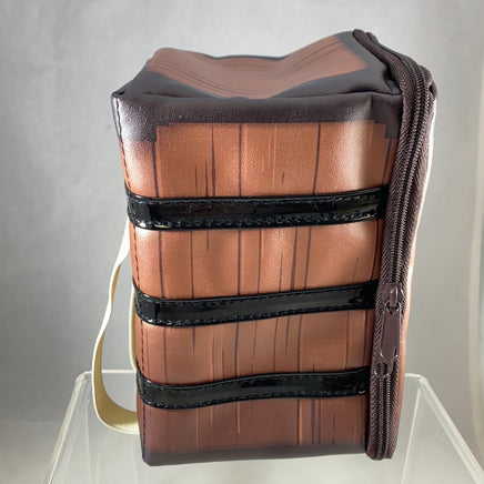 These pouches are large enough to accomodate a traditional Nendoroid or a Nendoroid Doll. There is elastic to hold the figure's stand in place so they can stand securely during transport and there is a pouch that velcros on the inside of the lid that can carry small accessories or personal items.