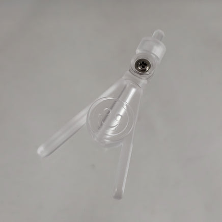 This is a type of 2 piece, adjustable Nendoroid stand that has not been included with any released Nendoroid. It is being exclusively sold seperately as a different option for Nendoroid support. It functions without a base or pedestal piece and instead has a special arm that acts to prop the Nendoroid up by using a traditional peg piece in the back. This will only work for standard Nendoroids that have a hole in their back (mainly those numbered 300 or later) and depending on the style of hair might not be ideal for all Nendoroids. The arm is adjustable to help fit it under long hair pieces and to adjust for the different heights of the holes in the back of Nendoroids. This stand is not designed for Nendoroid Dolls because when they stand they are too tall to use it, but it might be useful for posing them in a seated position.