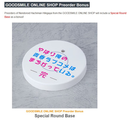 Each of the four main characters of My Teen Romantic Comedy had the same preorder bonus stand. If we have it in stock sealed you can chose which one you want if you care about having the packaging list the appropriate Nendoroid number but the stand base itself is identical regardless of which you choose.