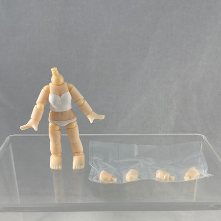This body is similar to the normal girl bodies of the Cu-Poche Friends line, but has an additional point of articulation at the waist allowing for additional posing options. It was used in some later releases of the Cu-poche Friends line like Anne (both the standard and Cotton Candy Ver.)